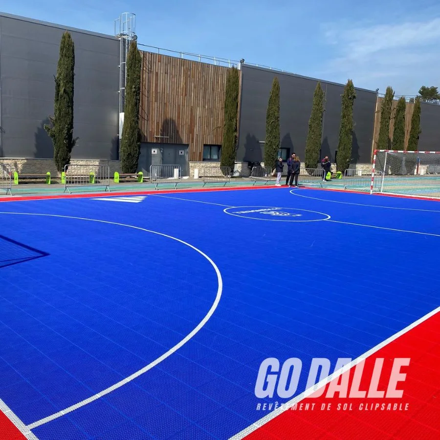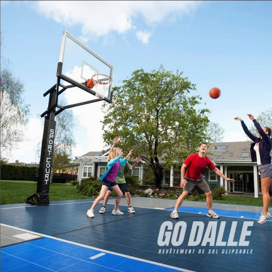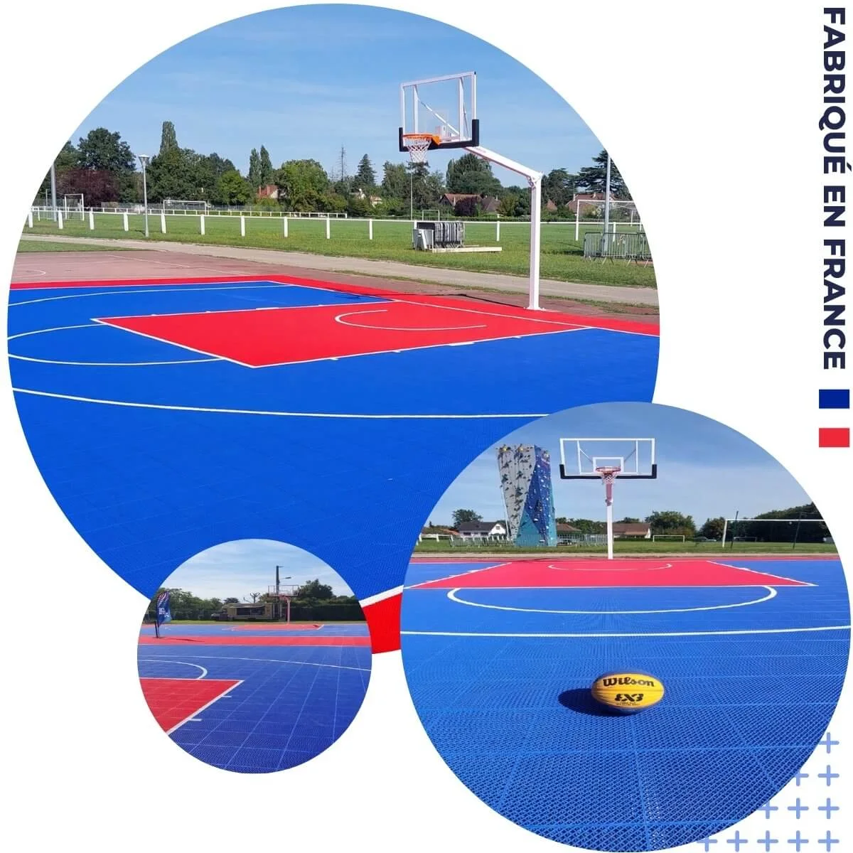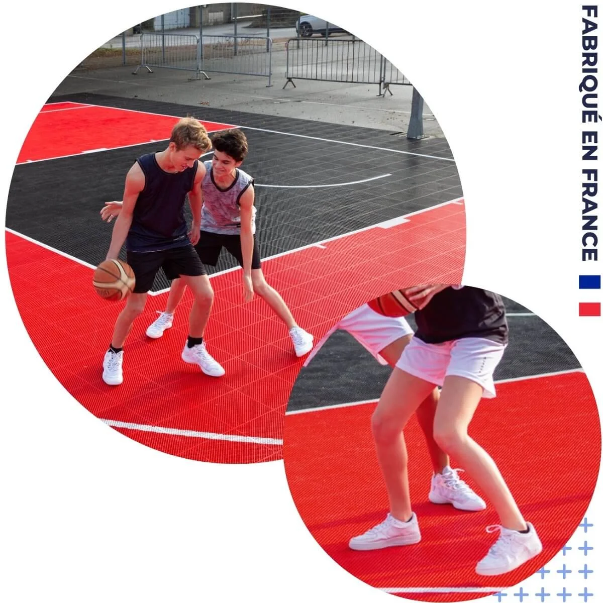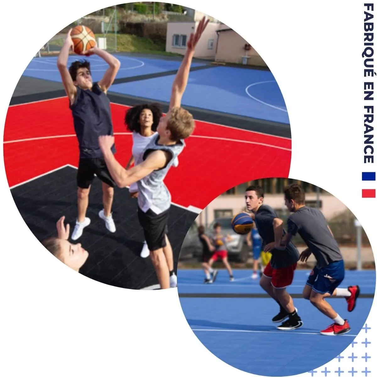 Notre dalle est conçue avec une structure alvéolée innovante pour un rebond de balle optimal, fidèle aux standards des terrains professionnels (Basket, Tennis, Futsal).