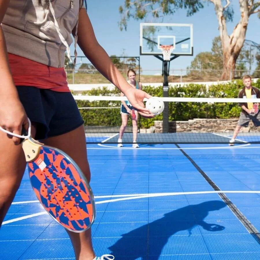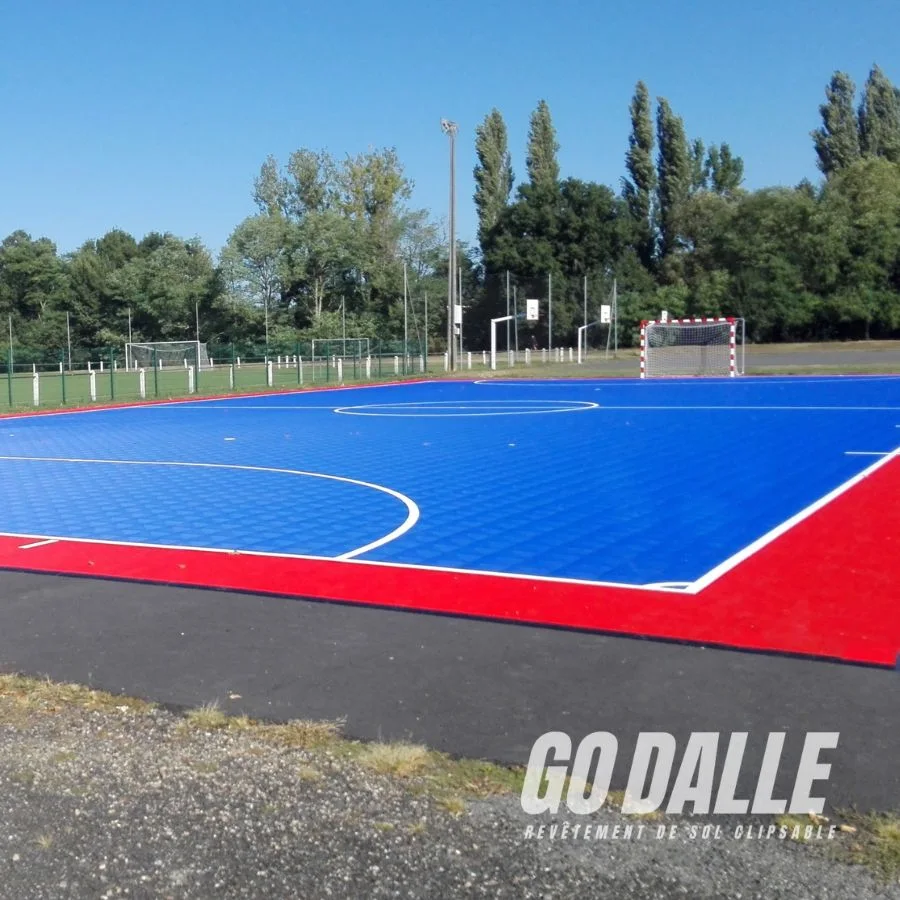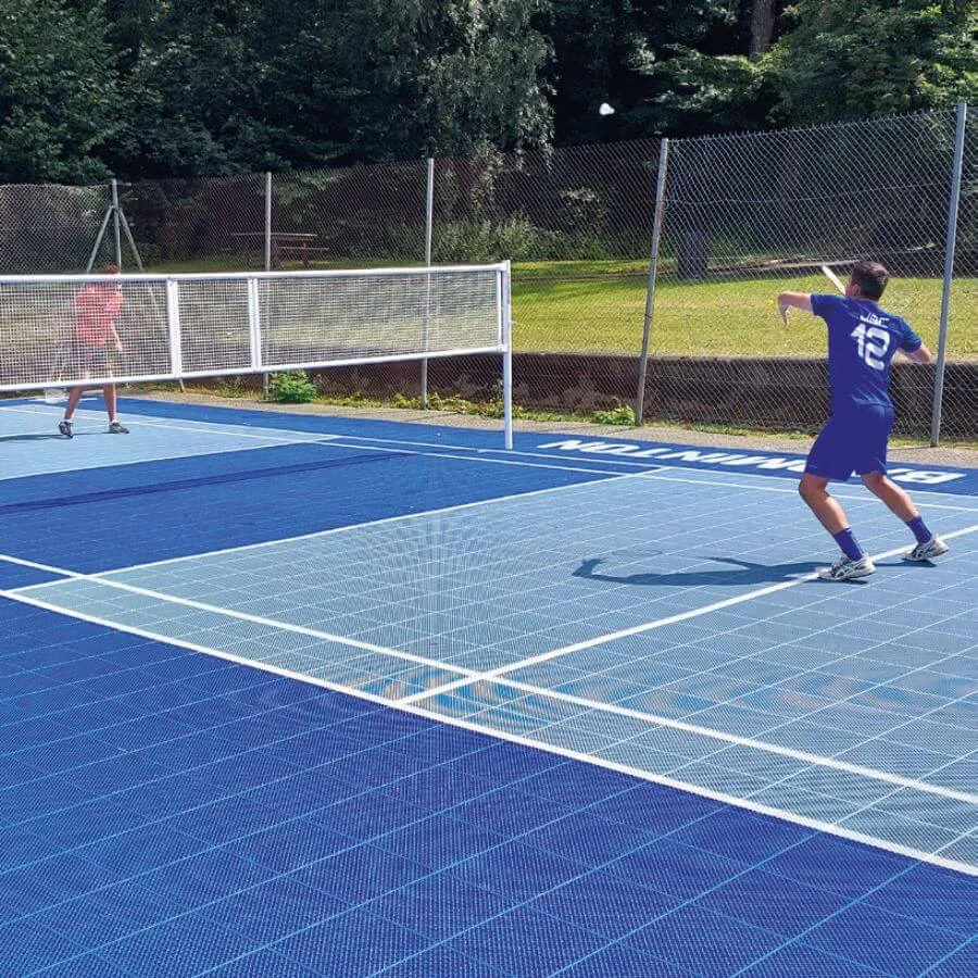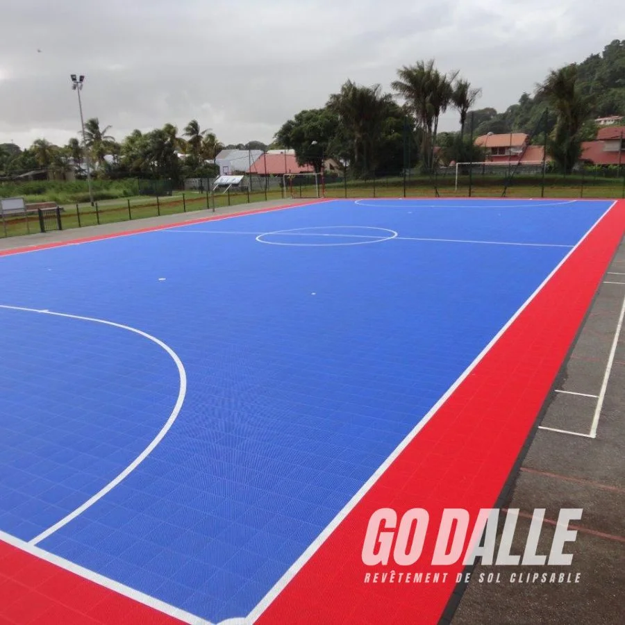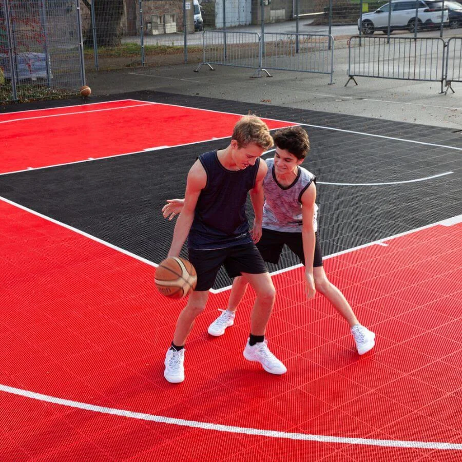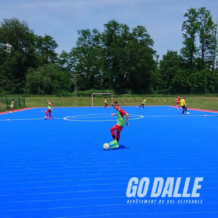 Notre dalle est conçue avec une structure alvéolée innovante pour un rebond de balle optimal, fidèle aux standards des terrains professionnels (Basket, Tennis, Futsal).